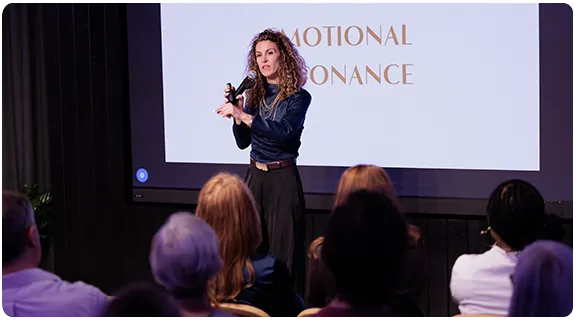 Learn to hold a room by staying connected to your message and body, rather than relying on performance techniques.